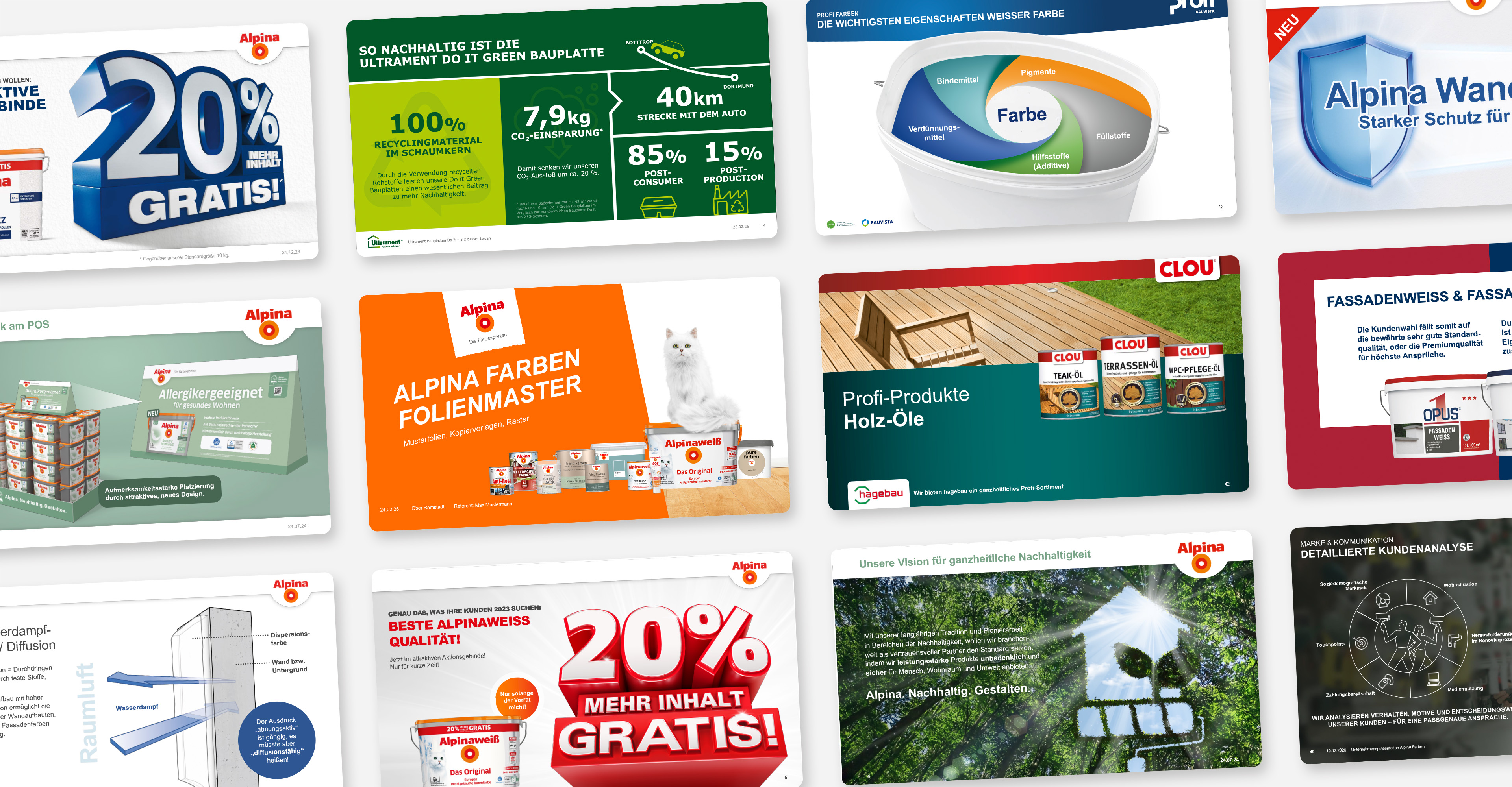Gestaltung vielfältiger Kommunikationsmittel für das Alpina Holzschutz-Sortiment, darunter Keyvisualentwicklung sowie Erstellung von POS und Werbematerialen.