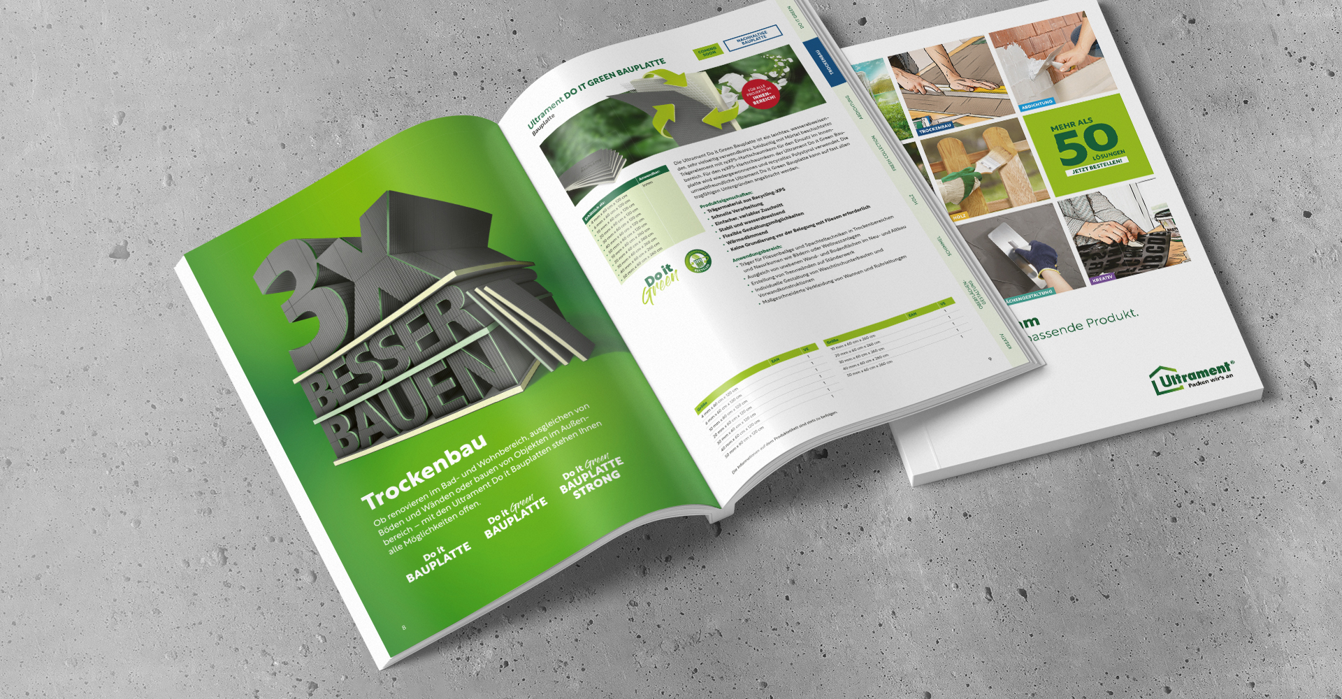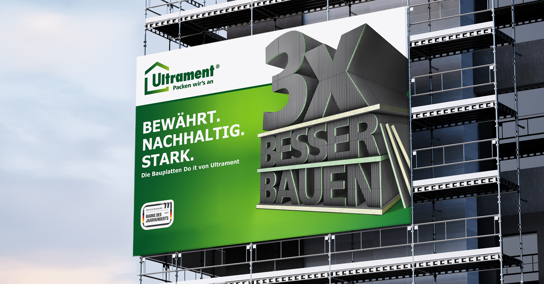 Ultrament „3× besser bauen“: Den Produktnutzen direkt auf den Punkt gebracht.